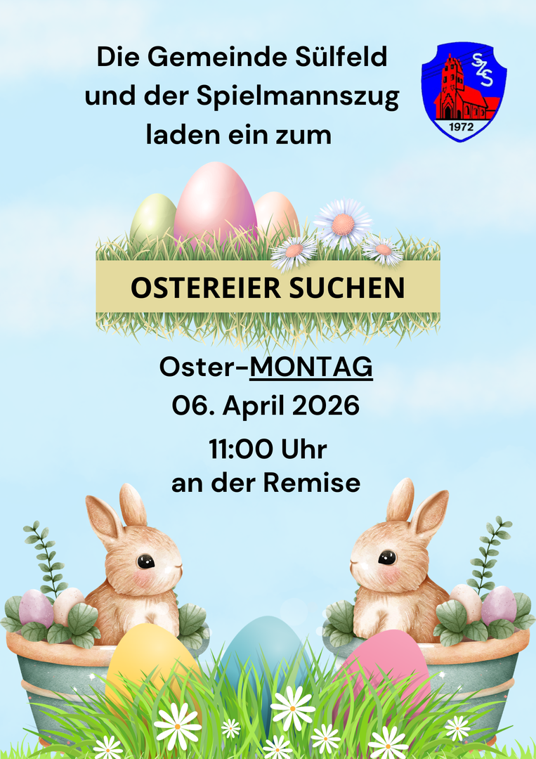 Achtung Terminänderung: Das Ostereiersuchen findet Oster-MONTAG statt! 06.April 2026 um 11.00 Uhr an der Remise